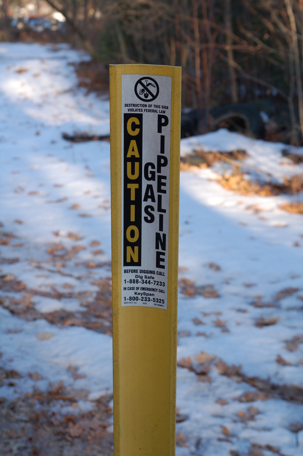 Photo taken Mar 10, 2008 of Northeast Gas Pipeline marked on map above (currently managed by Keyspan). Marker is used to indicate right of way of pipeline, which is to be kept clear for emergency purposes. | |