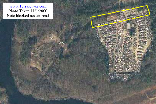 June 7, 2007 Photos show Town Farm Lane access obstructed by rows of vehicles from Jack's Used Auto Parts forming a barricade. |