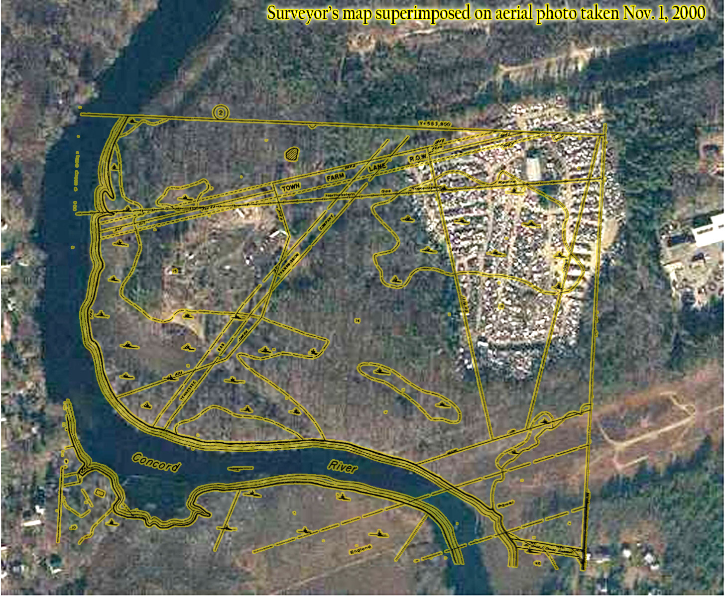 Survey map overlaid on Aerial photo shows wetland